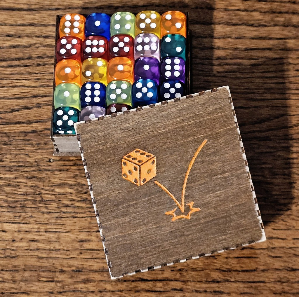 Boîte sur mesure pour 50 dés à 6 faces de 14mm