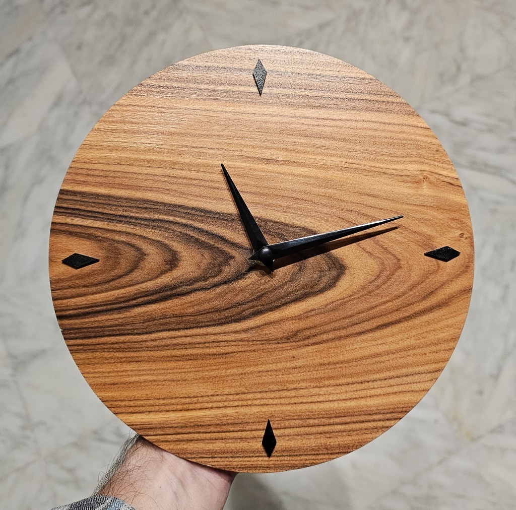 Placage de Palissandre de Santos ; j'aime le côté spatial des nervures de ce bois, on dirait l'orbite d'une planète lointaine