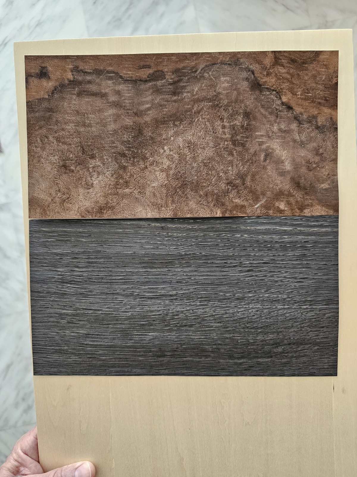Choix des feuilles de bois, loupe de noyer US et chêne des marais...