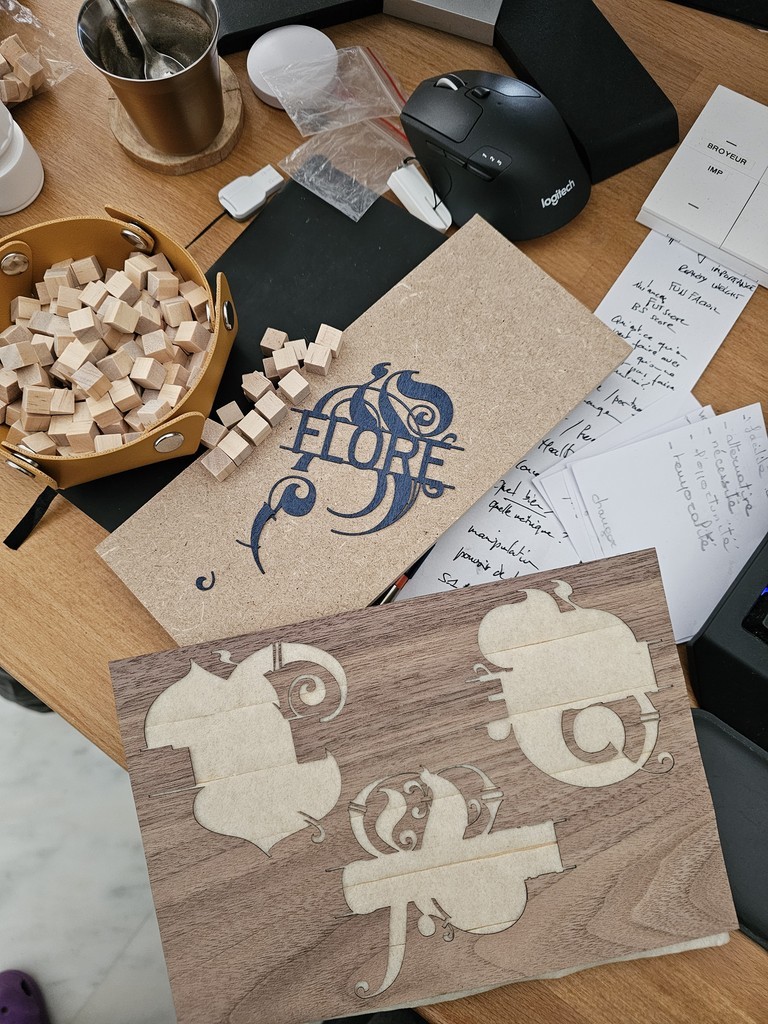 Début de la découpe, feuille de noyer et tulipier, premiers tests