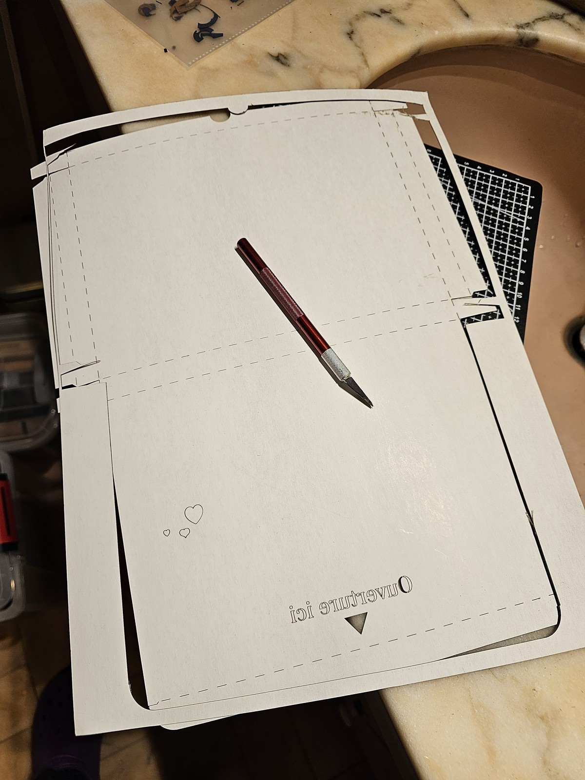 Je n'ai pas réglé la puissance du laser assez fort pour ce matériau, il faut finir les découpes au cutter !